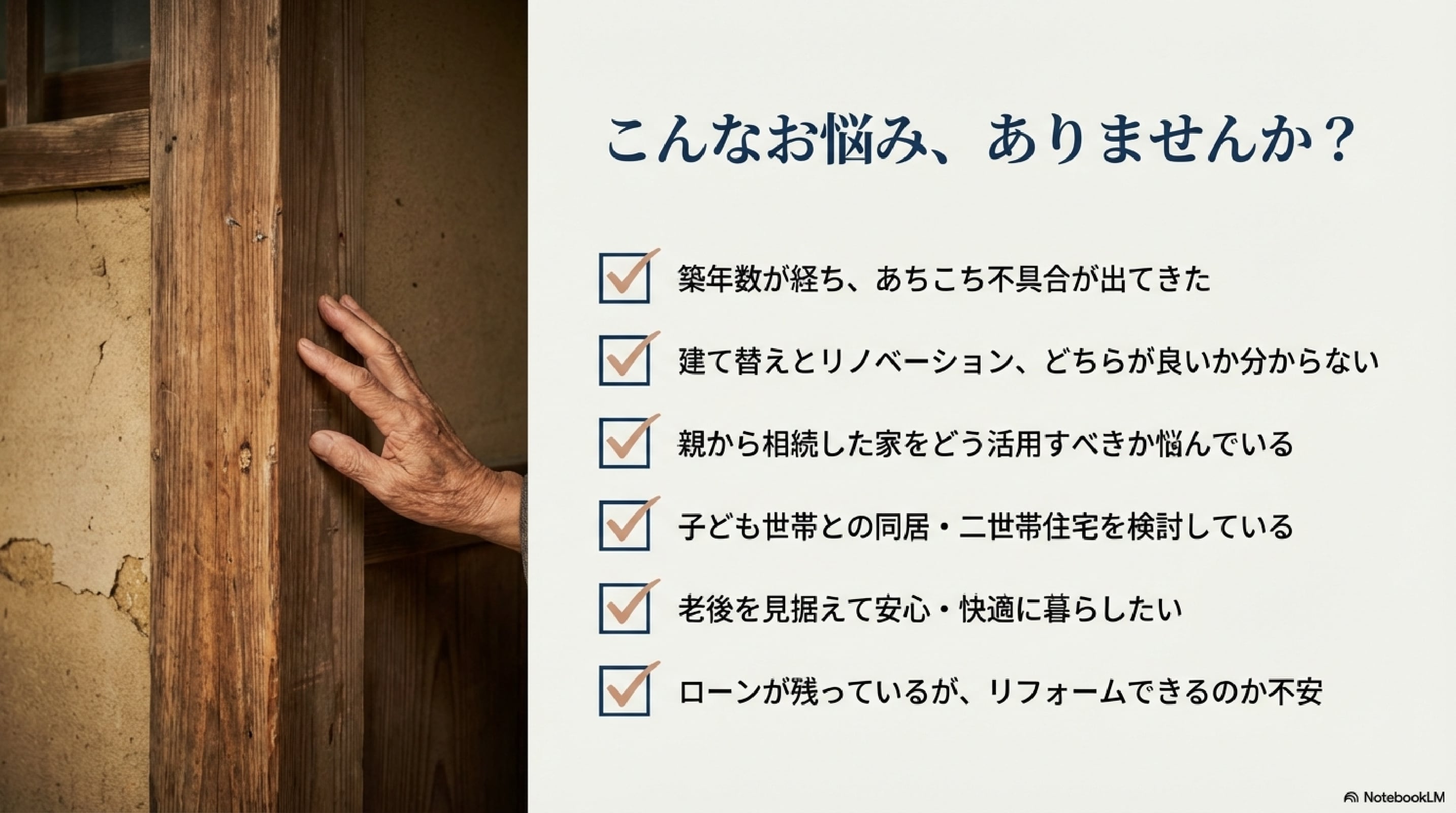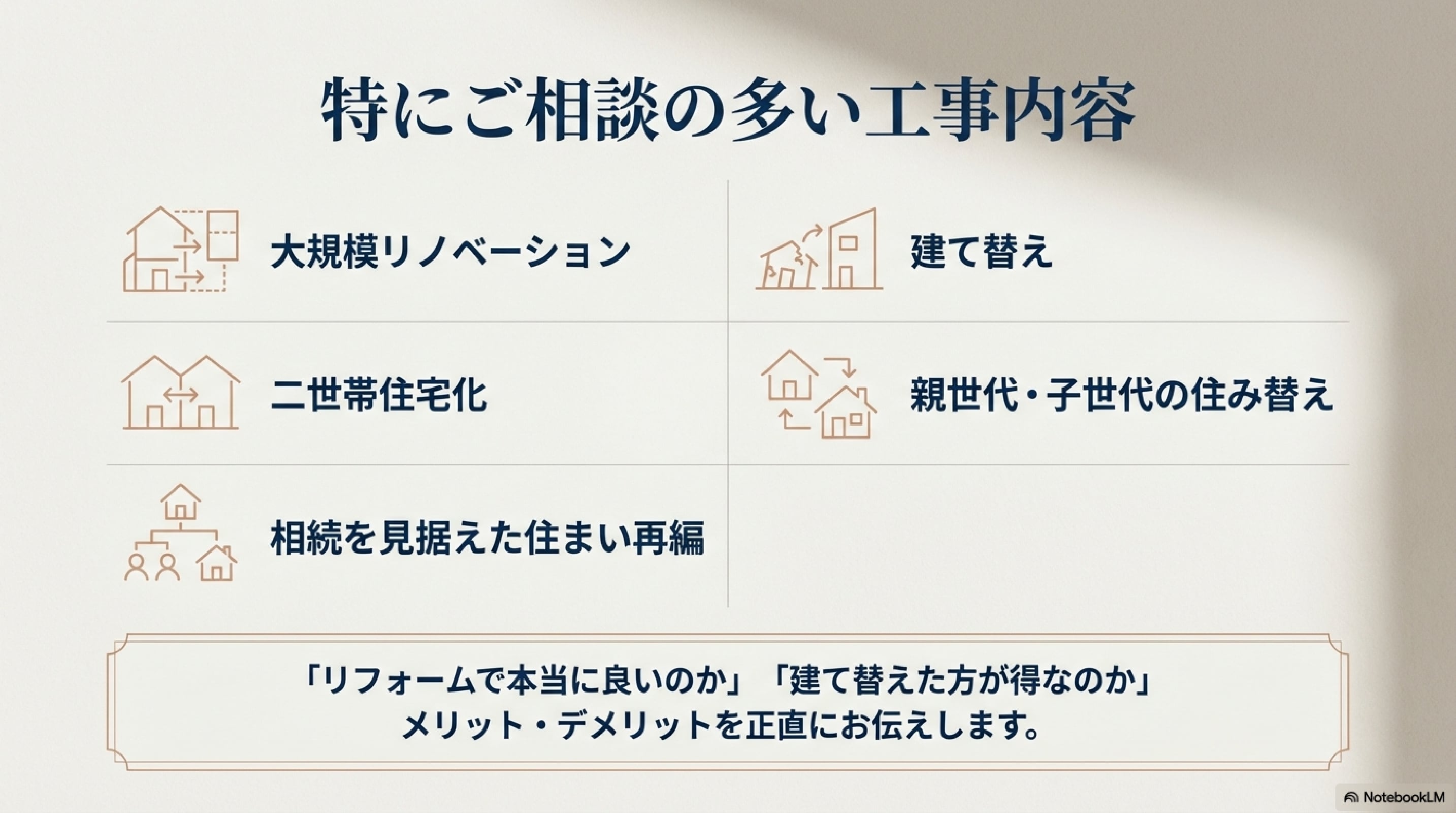 住まいのリフォームをきっかけに、お金・相続も含めたオールインワンで改善提案!!
